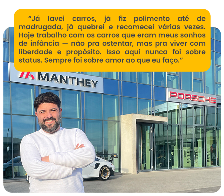 Hoje, sou importador de veículos e cofundador da NEVOIRE, uma curadoria automotiva internacional, de alto padrão que conecta clientes exigentes a carros exclusivos, raridades e oportunidades que não aparecem online.